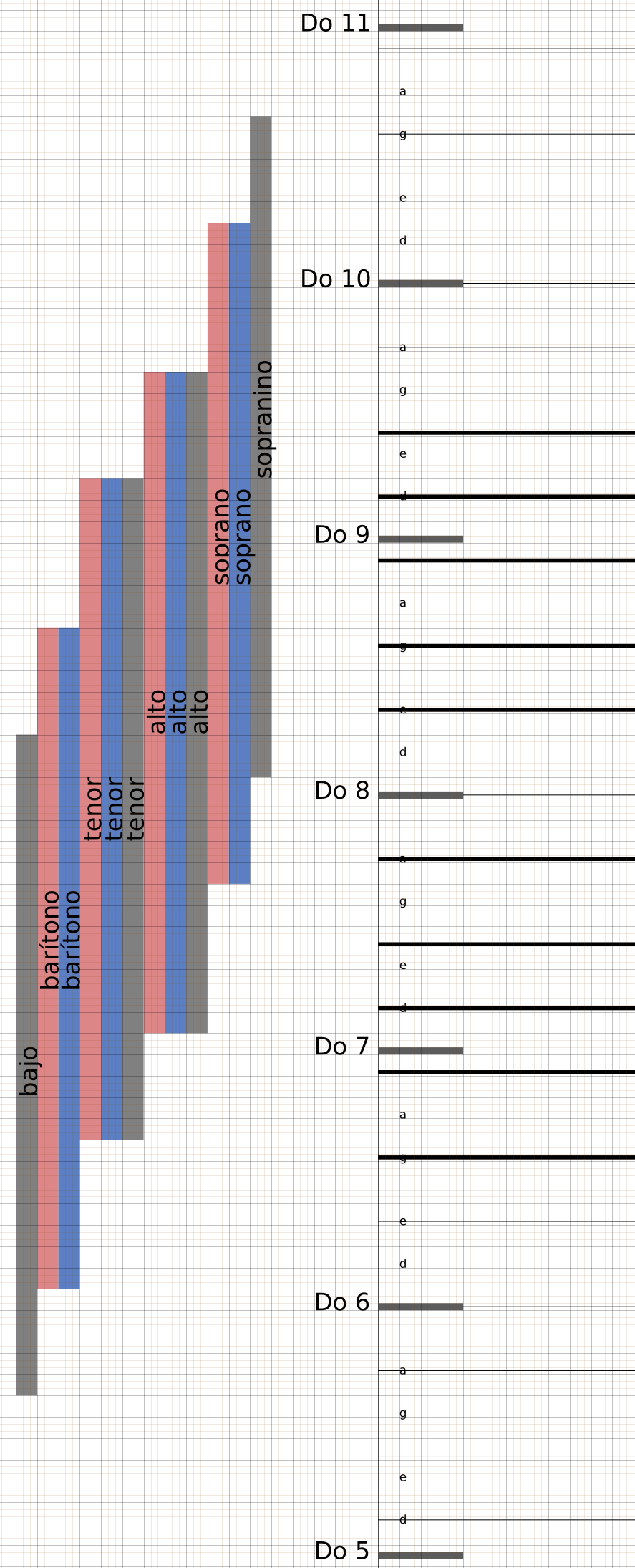 Las notas del cuarteto Q1 (de afinación normal) aparecen en gris, las del Q2 (sexto de tono bajo) en azul y las del Q3 (sexto de tono alto) en rojo. Esta grafía facilitó la escritura de las disposiciones armónicas dentro de las restricciones verticales y horizontales.
